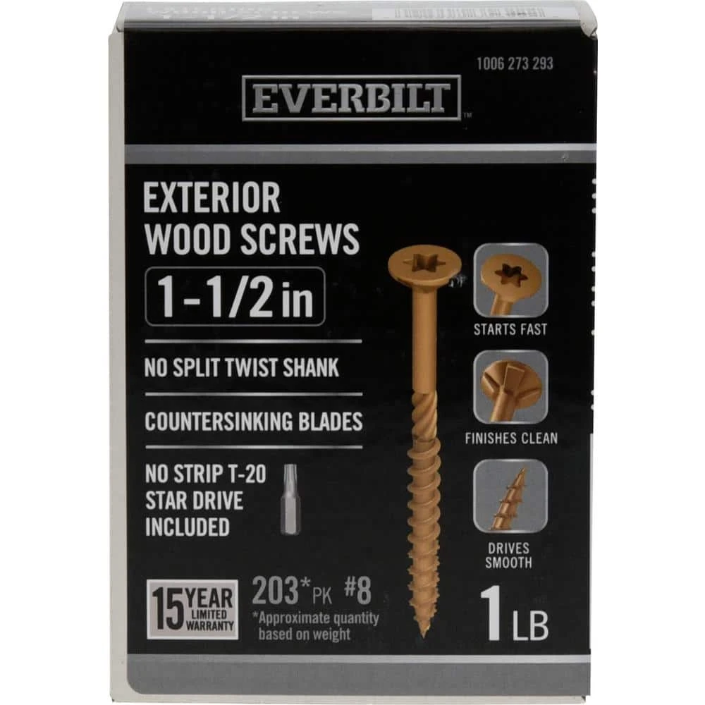 Everbilt #8 x 1-1/2 in. Star Drive Flat Head Exterior Wood Screws (203-Pack)