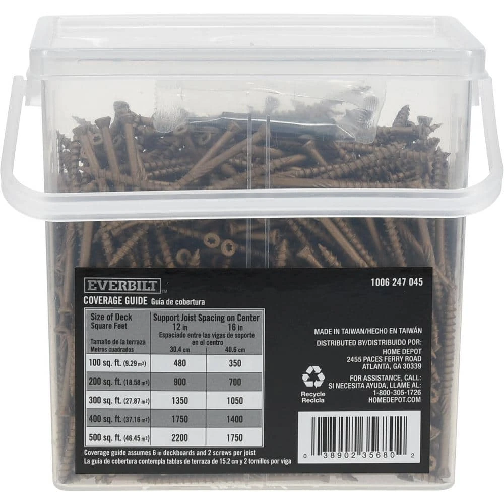 Give your outdoor wood projects a seamless finish with these Everbilt trim-head exterior screws. The unique thread design drives into wood easily, without the need to pre-drill. The spiral shank enables smooth installation, and the underhead nibs provide a clean, flush finish that’s less visible than traditional flat head wood screws. These screws are designed for use with treated lumber and are guaranteed against corrosion.