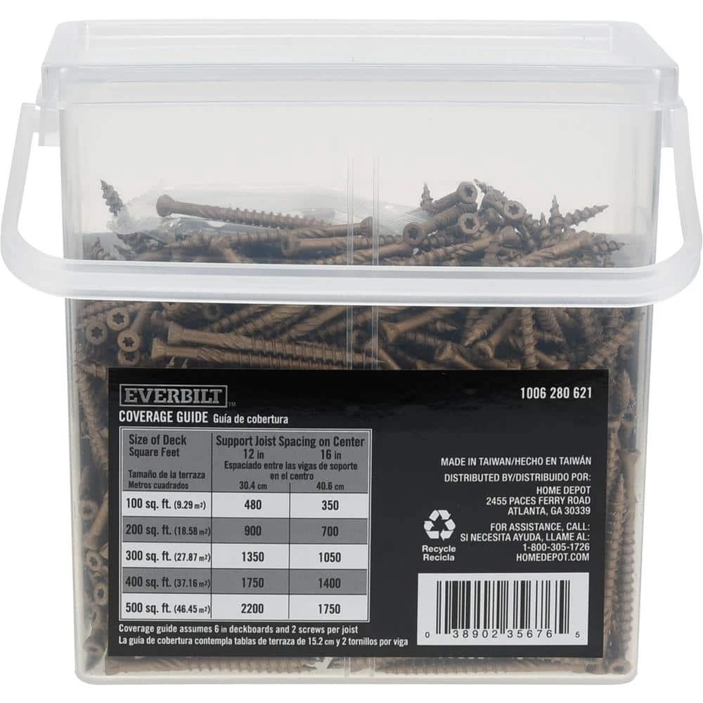Give your outdoor wood projects a seamless finish with these Everbilt trim-head exterior screws. The unique thread design drives into wood easily, without the need to pre-drill. The spiral shank enables smooth installation and the underhead nibs provide a clean, flush finish that’s less visible than traditional flat head wood screws. These screws are designed for use with treated lumber and are guaranteed against corrosion.
