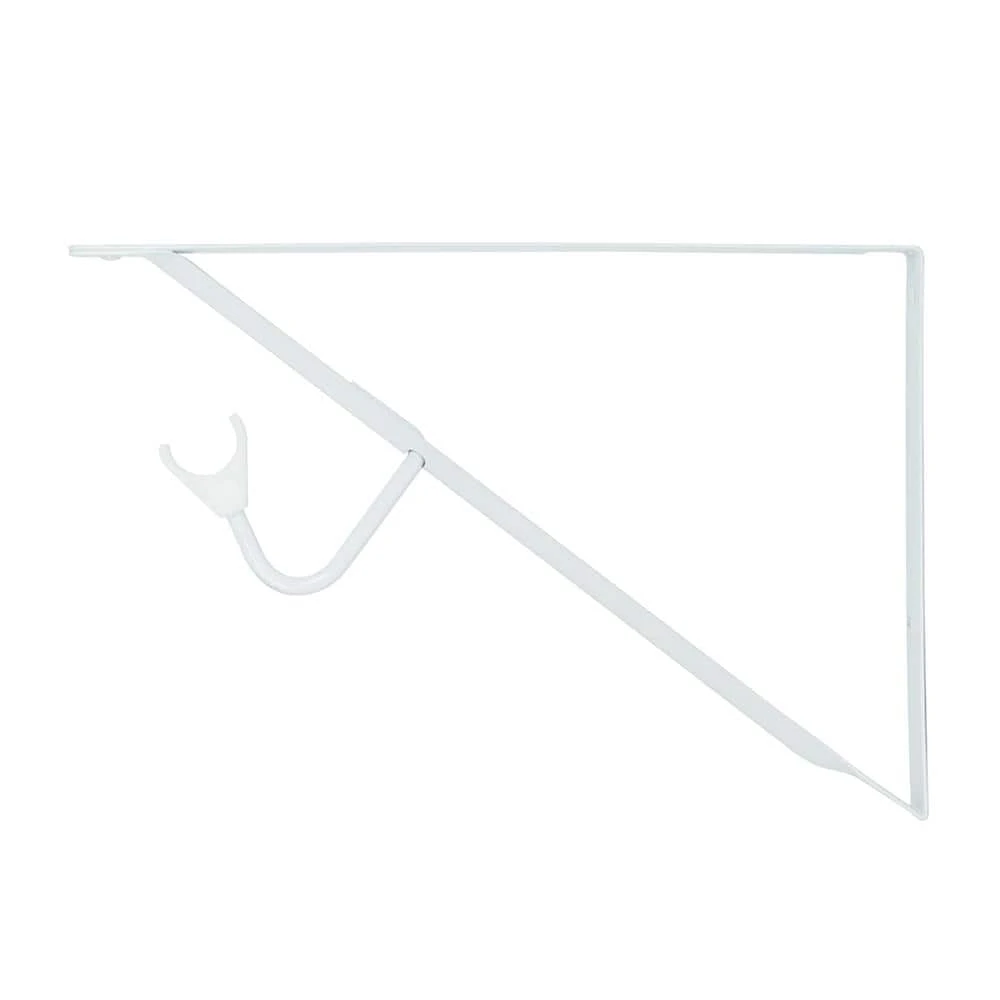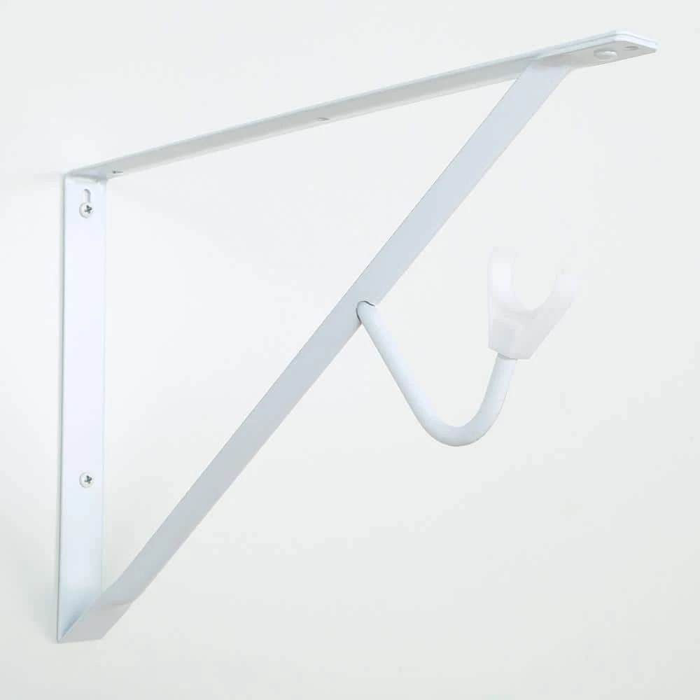 The Everbilt 15 in. White Shelf and Rod Bracket has a white, powder-coat finish and a unique snap in pole feature. A pair of brackets (each sold separately) can support a shelf up to 18 in. D and can support up to 250 lb. of clothing and accessories when they are installed properly in wall studs. Deep shelving closet installations (most commonly 15-3/4 in.) are perfect for walk-in closet setups where more storage space is desired.