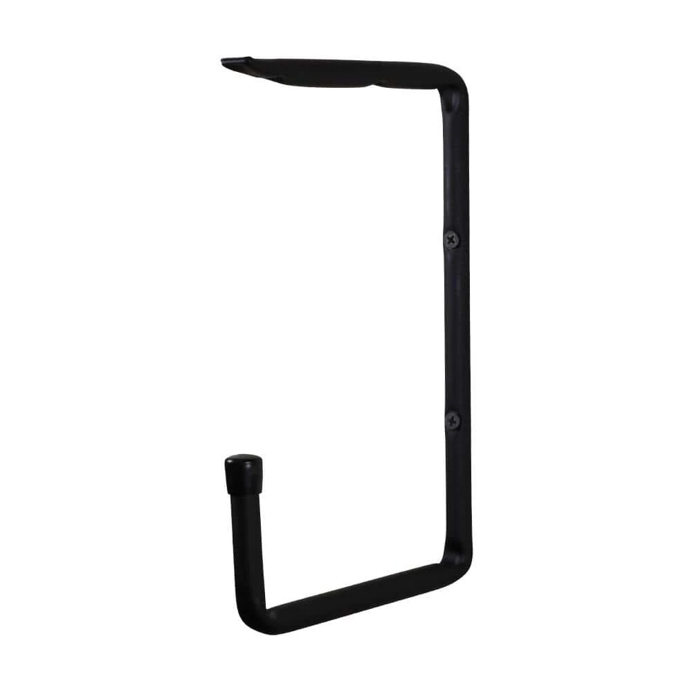 Use this 2-In-1 Wall/Ceiling Steel Hook and Shelf Hanger in Black for Large Items to put a shelf on top and hang items below or have 2-shelves, it’s up to you. Quality steel contruction and modern black finish makes this hook perfect for use in the home as well as in your garage, workshop, tool shed, and basement. Use in conjunction with another shelf hanger for more storage options. Comes with hardware for easy wall installation. Stud-mounted installation recommended for security.