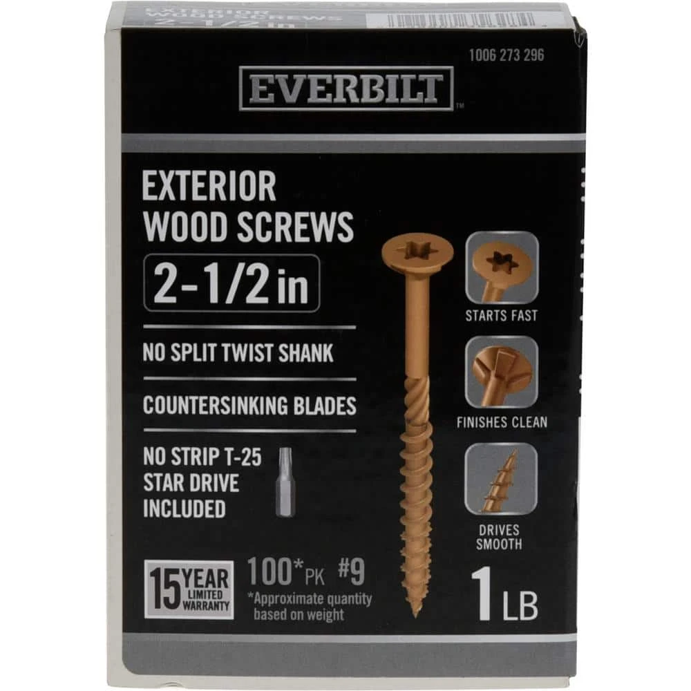 Everbilt #9 x 2-1/2 in. Star Drive Flat Head Exterior Wood Screws (100-Pack)
