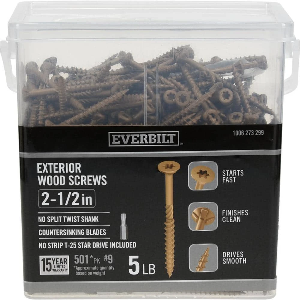 Everbilt #9 x 2-1/2 in. Star Drive Flat Head Exterior Wood Screws (501-Pack)