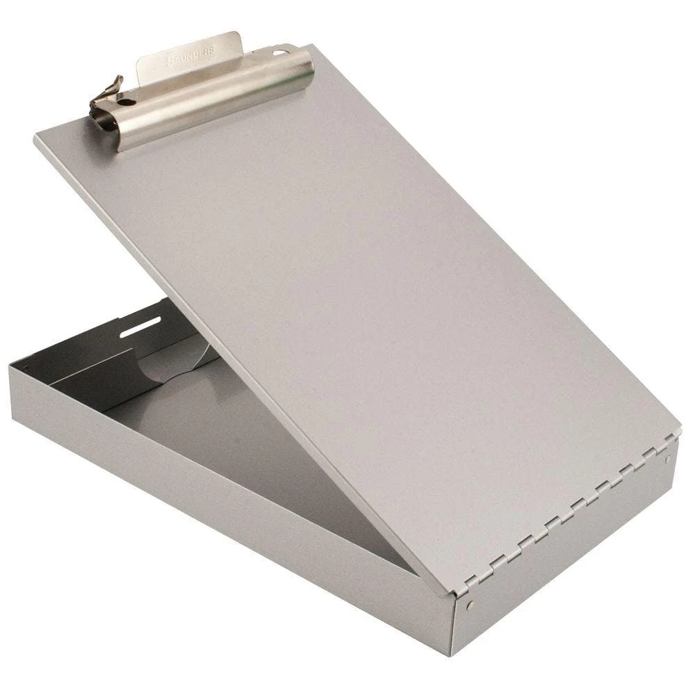 Our Aluminum Storage Clipboard is full of features essential for contractors and mobile professionals. Featuring a bottom compartment for storage as well as a built-in pencil and pen tray. Robustly designed to be durable and lightweight while providing a smooth writing surface with a high capacity clip. Designed with the user in mind the clipboard also features a built-in license and card holder and holds letter sized paper.