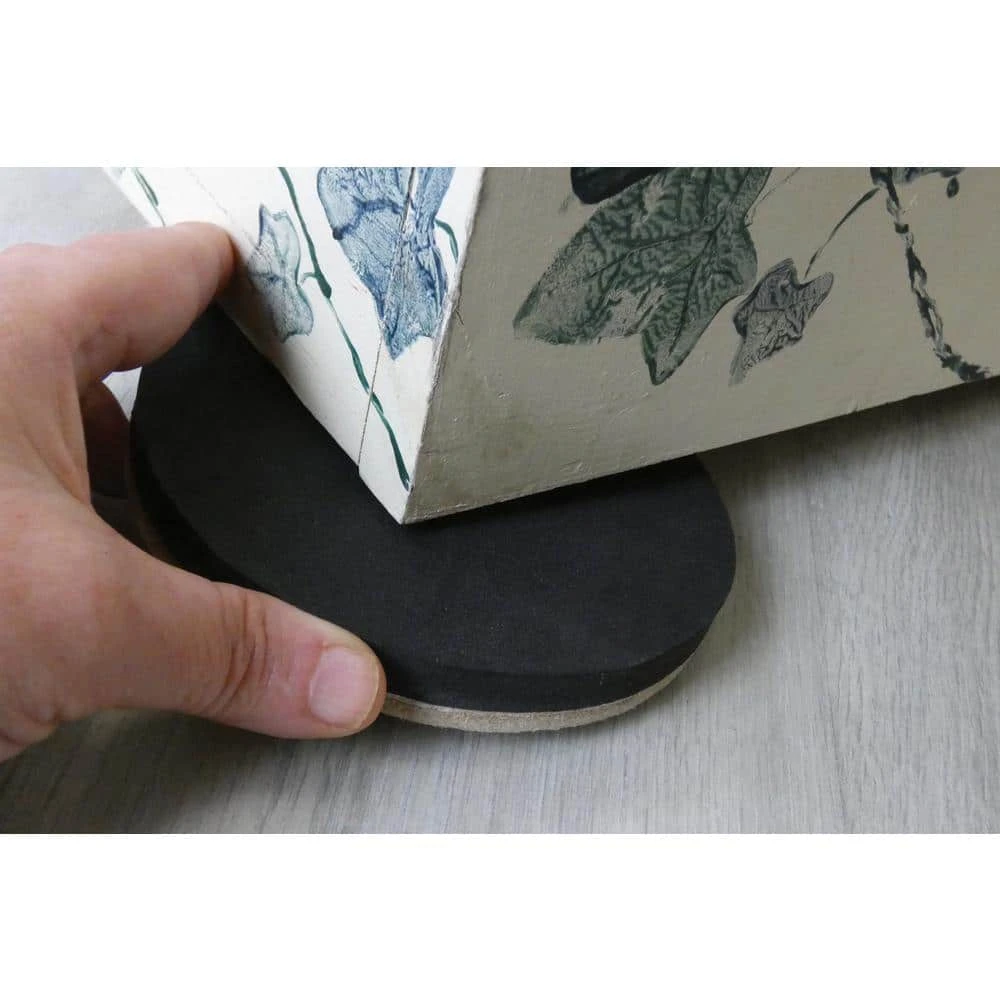 - Self-adhesive felt pads adhere to wooden legs of chairs, tables and other furniture to diminish friction and noise