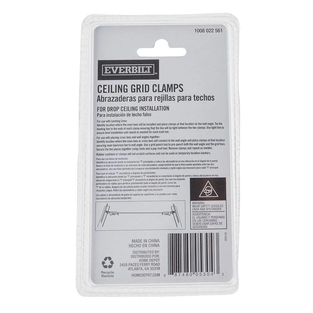 Use the Everbilt Grid Clamps for temporary support when installing rivets in drop installation grids. The clamps also help maintain secure, level lines during drop ceiling installation. Easily operate with 1 hand due to simple thumb lever. The grid clamps are a key part of the full Everbilt accessory line up for ceiling grid installation and are also included in the model 805354 Ceiling Grid Installation Kit.