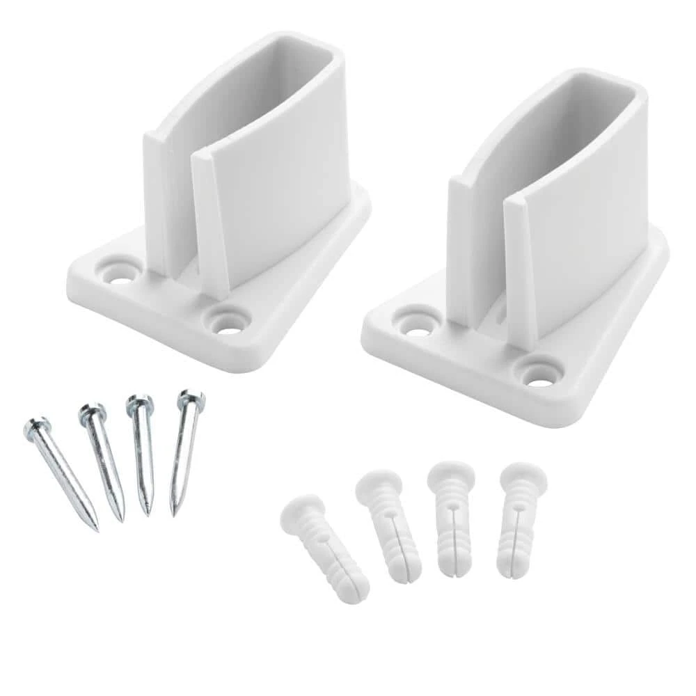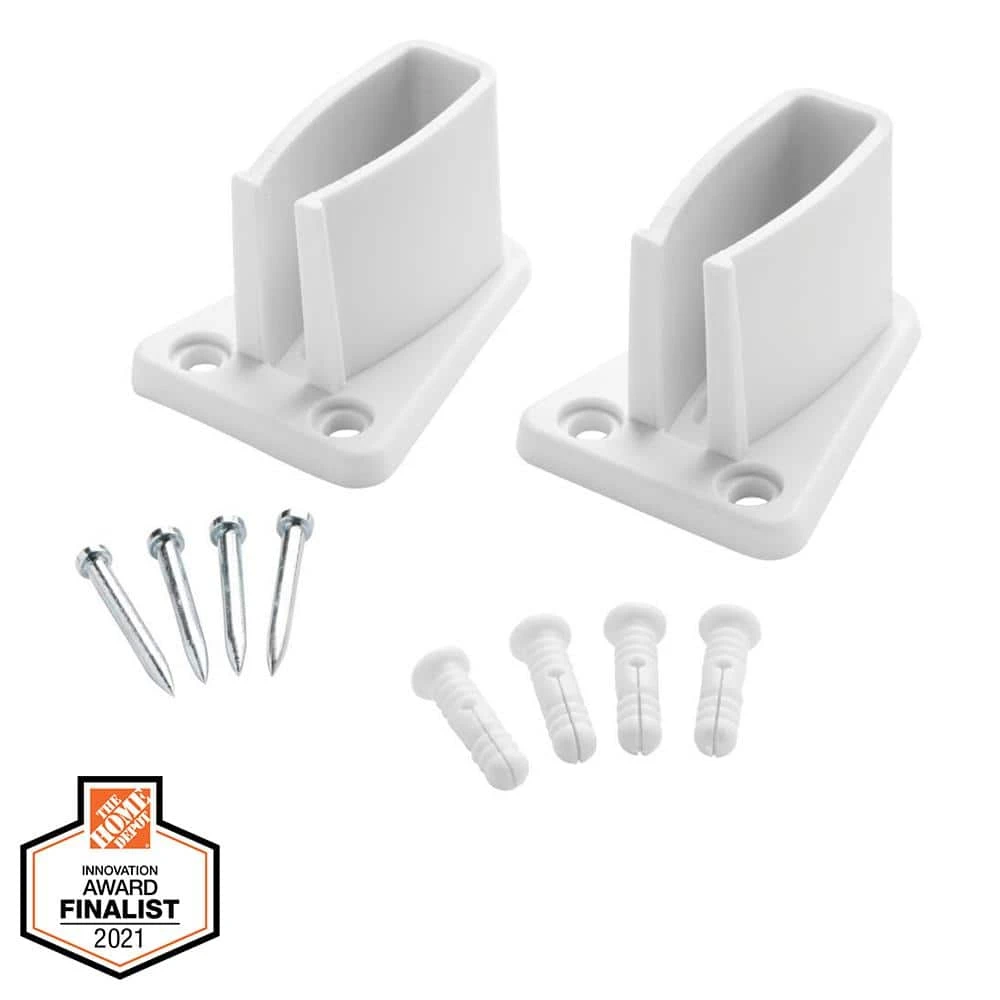 The Everbilt Fixed Rod Shelf Wall Bracket is designed support the front lip of any Everbilt Fixed Rod ventilated wire shelf. For use in a wall-to-wall or wall-to-open application. Use in conjunction with support brackets and wall clips in a fixed mount installation (support brackets and wall clips sold separately). All hardware included for installation.