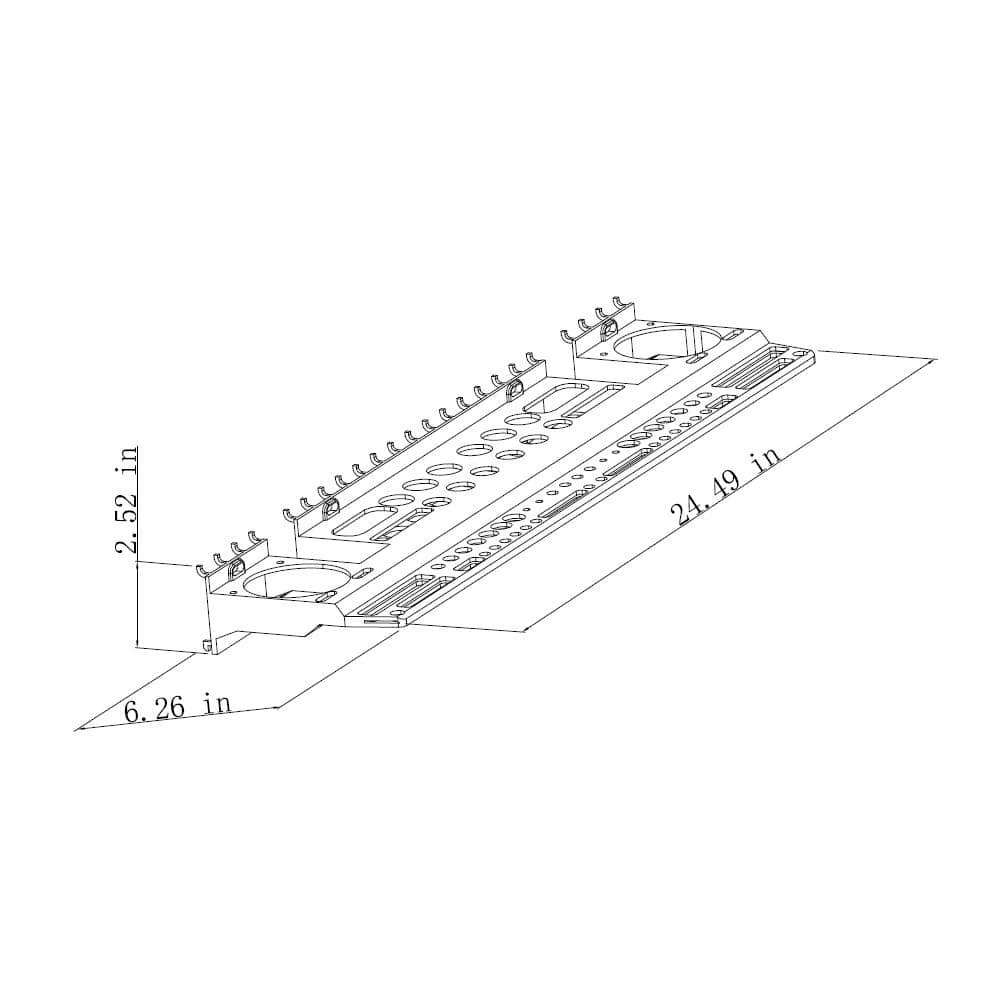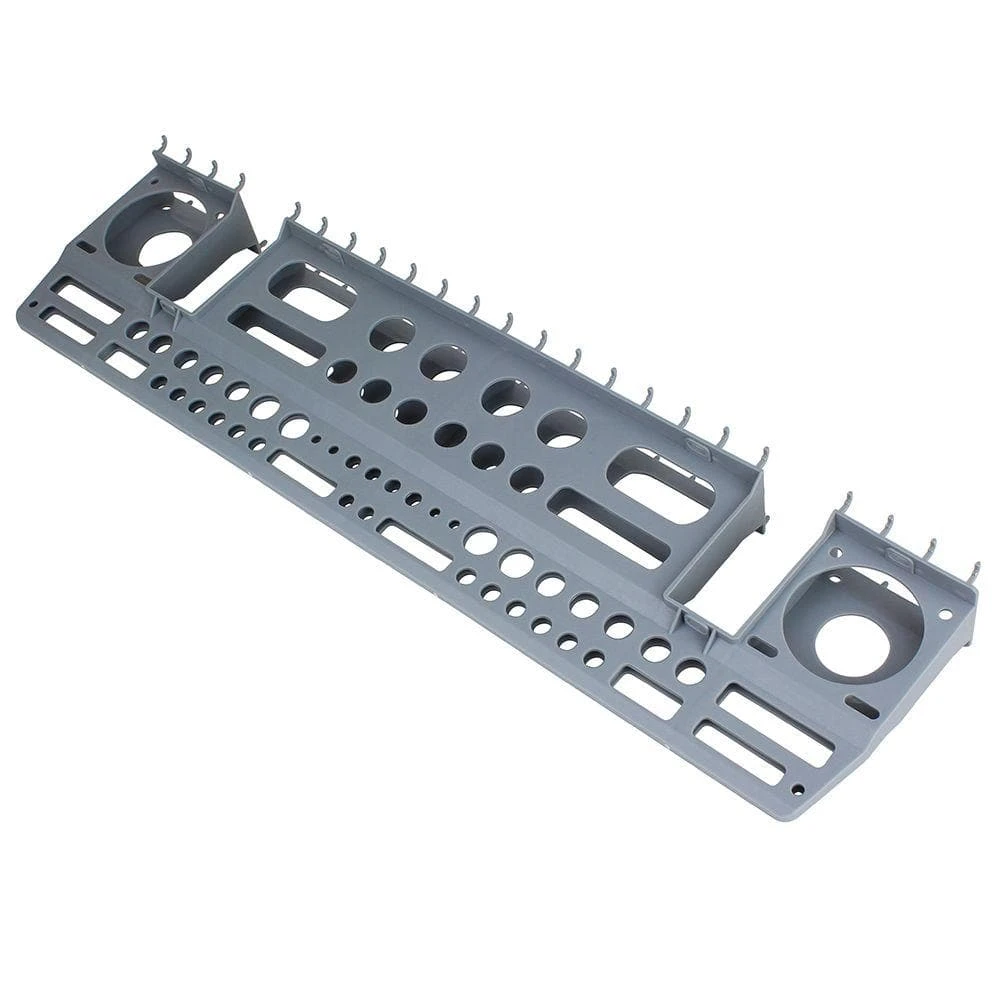 The Everbilt Wall-Mount or Peggable Multipurpose Tool Holder can mount to peg board, studded walls or solid walls. It can be used in the garage, workshop, tool shed, basement, and throughout the home. The tool bar fits a variety of tools such as screwdrivers, pliers, hammers, hex keys etc. and has a cut out area to nest around wall studs if necessary. There is also a ruler on the tool bar for added convenience. A variety of holes and slots allow for many types of small tools to be stored.