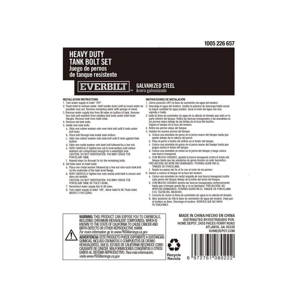 - Includes 2-bolts and nuts and washers for 1-toilet (toilet not included)