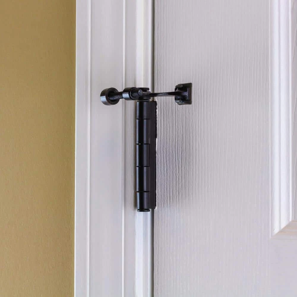 The Everbilt Hinge Pin Doorstop is held in place with a hinge pin. The self-adjusting pad makes full contact with the door. An oversized bumper mounted on an adjusting screw protects the door trim.