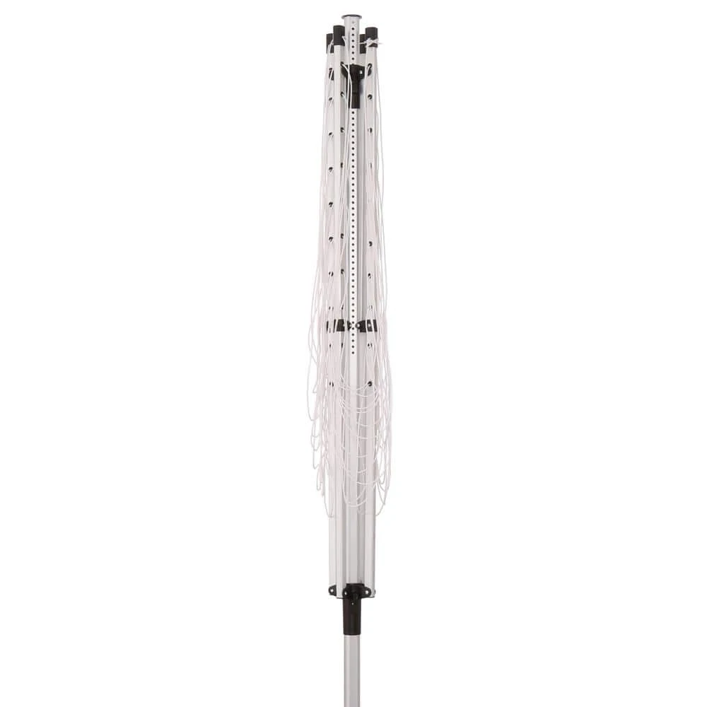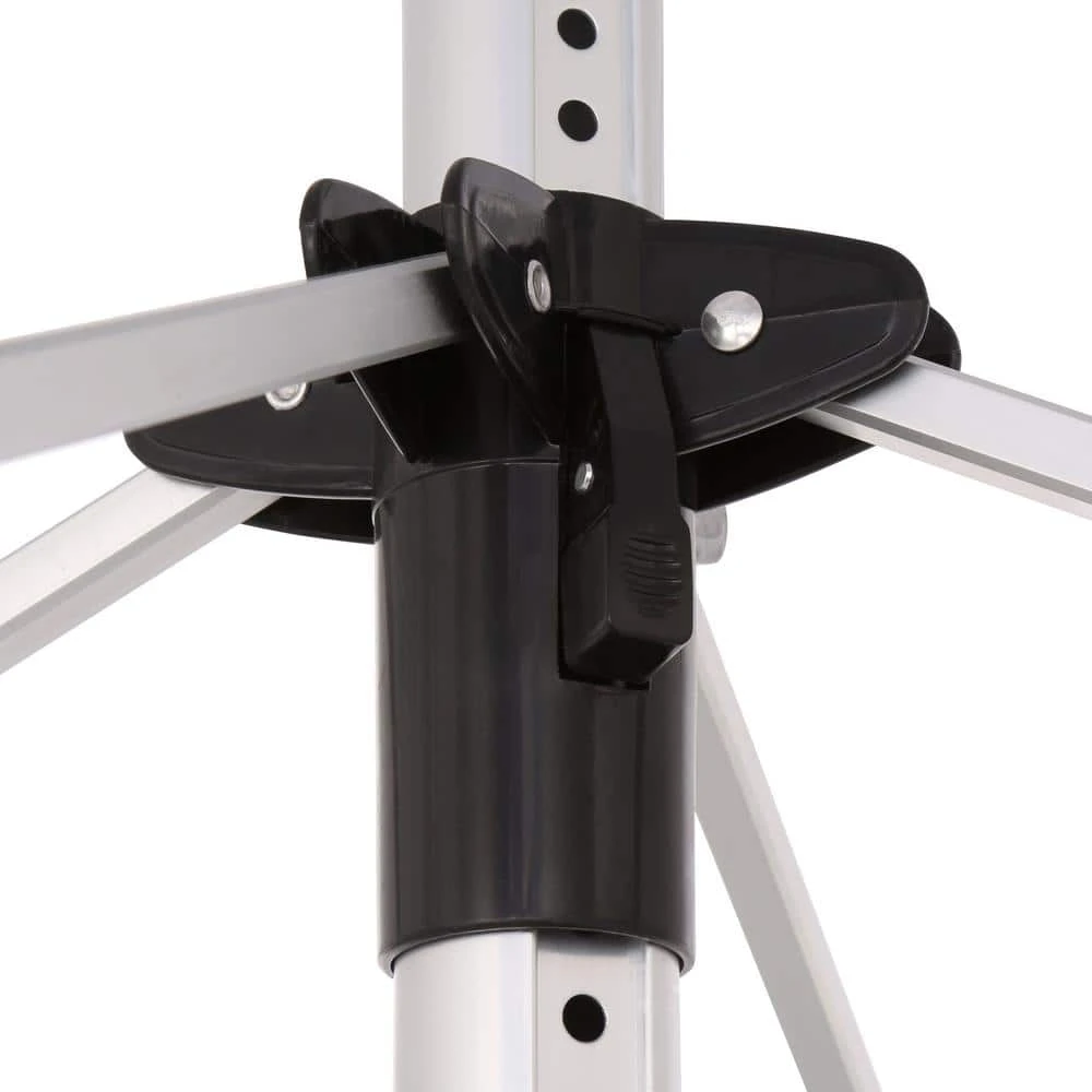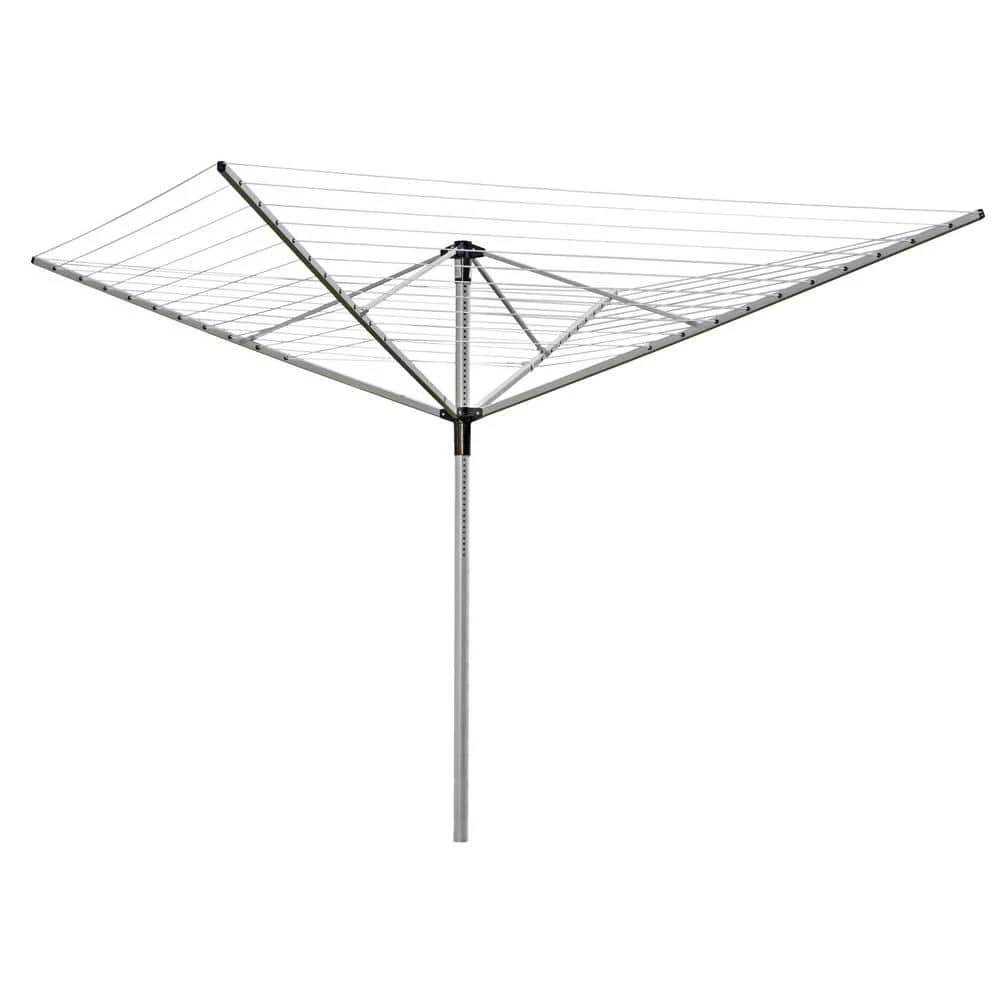 For outdoor use, the Everbilt outdoor umbrella clothes dryer has approximately 197 lin. ft. of drying space. This alternative to a mechanical clothes dryer conserves energy and saves money. Lightweight aluminum construction with plastic lines is corrosion and mildew resistant. When fully opened, the width is 104 in. and height is 84 in. Comes with 24 bonus wood clothespins. This clothes dryer must be installed into the ground outside-instructions included.