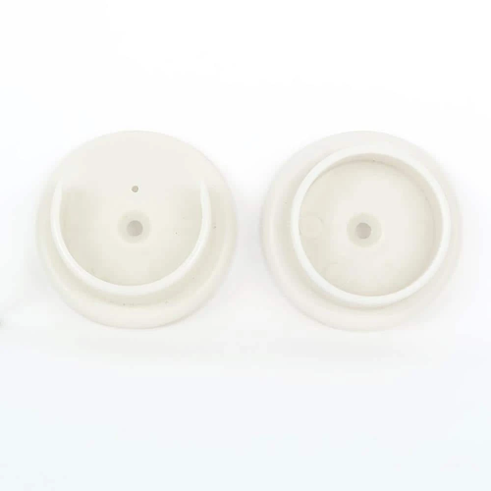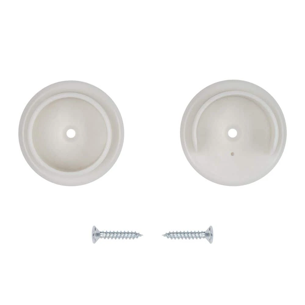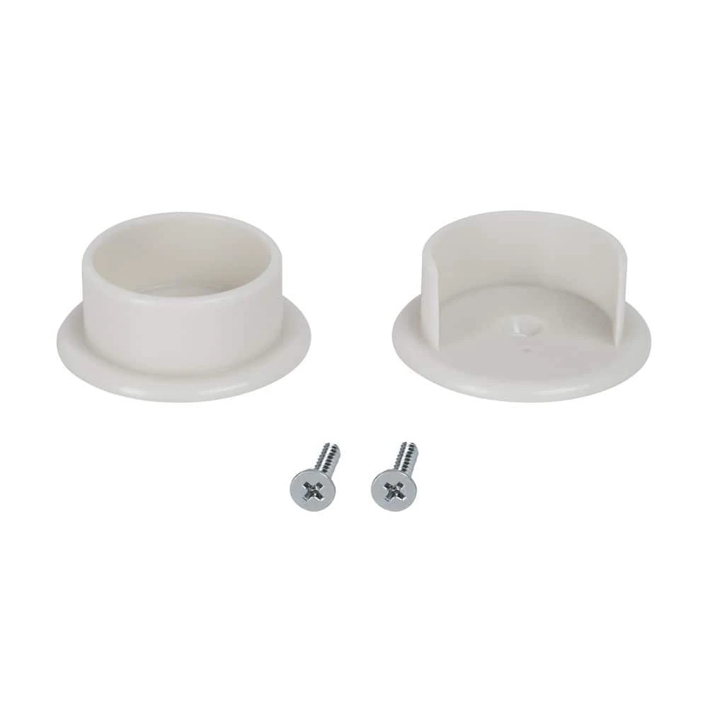 This pair of closet pole sockets is constructed of durable plastic with a white finish. The closed closet pole socket installs with only one fastener, while the open socket installs with an additional nail to prevent it from rotating during use. These closet pole sockets are simple to install, and they are used by many manufacturers.
