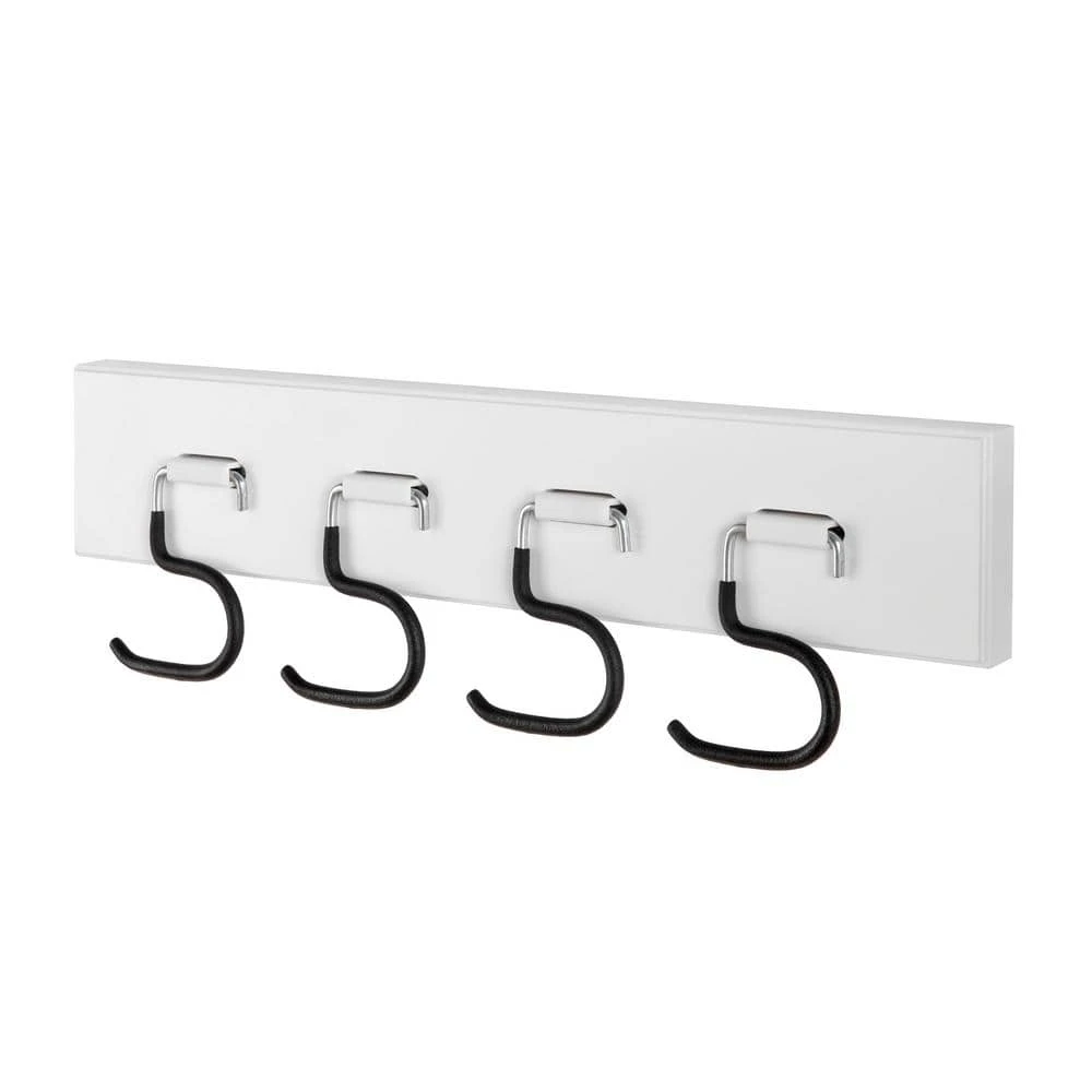 The Everbilt White Board Wall-Mounted Garage Storage Tool Organizer with Black Vinyl-Coated Steel Hooks offers a design-forward tool organizing solution that is ideal for use in the garage, kitchen, laundry room, broom closet and throughout the home. Ideal for holding mops, rakes, brooms or sports equipment. Easy release by lifting the handle. Easy to assemble and includes mounting hardware, drywall anchors and level. Hooks hold up to 12 lbs. for optimal holding power, fasten directly to wood studs.