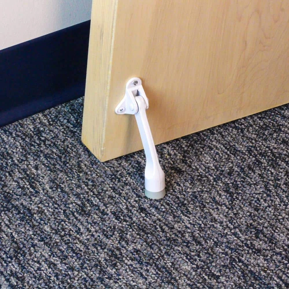 The Everbilt Kick Down Door stop flips down easily to hold a door open. Door stop does not interfere with door operation while in raised position. Easy to install.