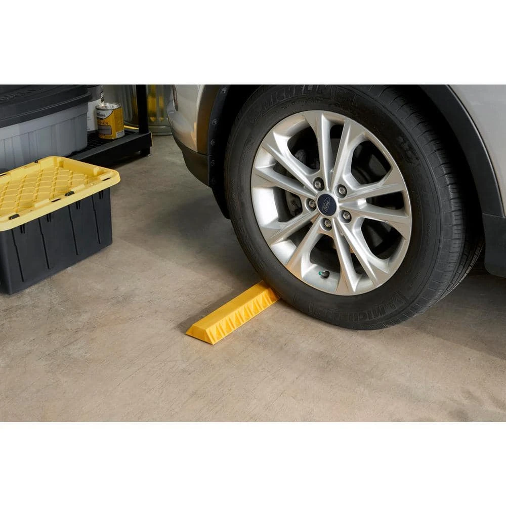The Everbilt Yellow Protective Parking Stop/Bumper is a parking aid that provides a dependable parking stopping point for your garage. Easily secured to your garage floor with included adhesive tape strips. This parking aid helps drivers park accurately every single time and is ideal for small spaces so you can protect your car and your garage walls. With this parking aid you can take the guessing game out of parking and park easily knowing that you are maximizing your space while keeping your workbench and the rest of your garage safe.