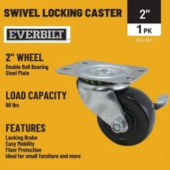 Everbilt 2 in. Black Soft Rubber and Copper Swivel Plate Caster with 80 lb. Load Rating (2-Pack)